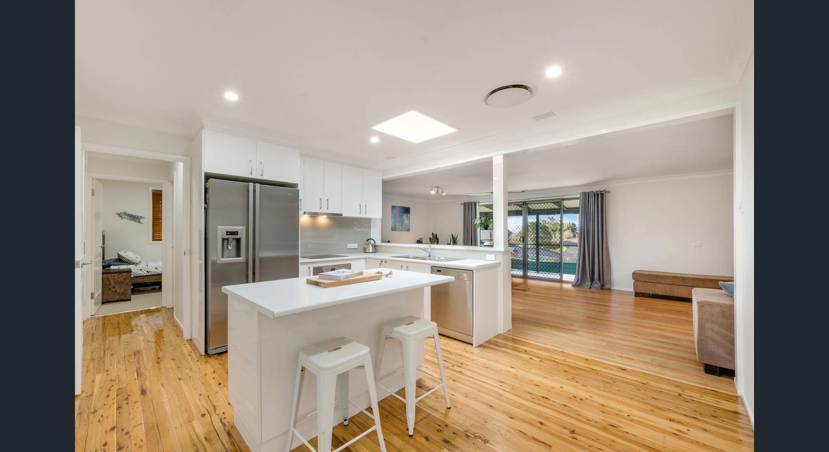 - Spacious open plan kitchen with stainless appliances & island bench top