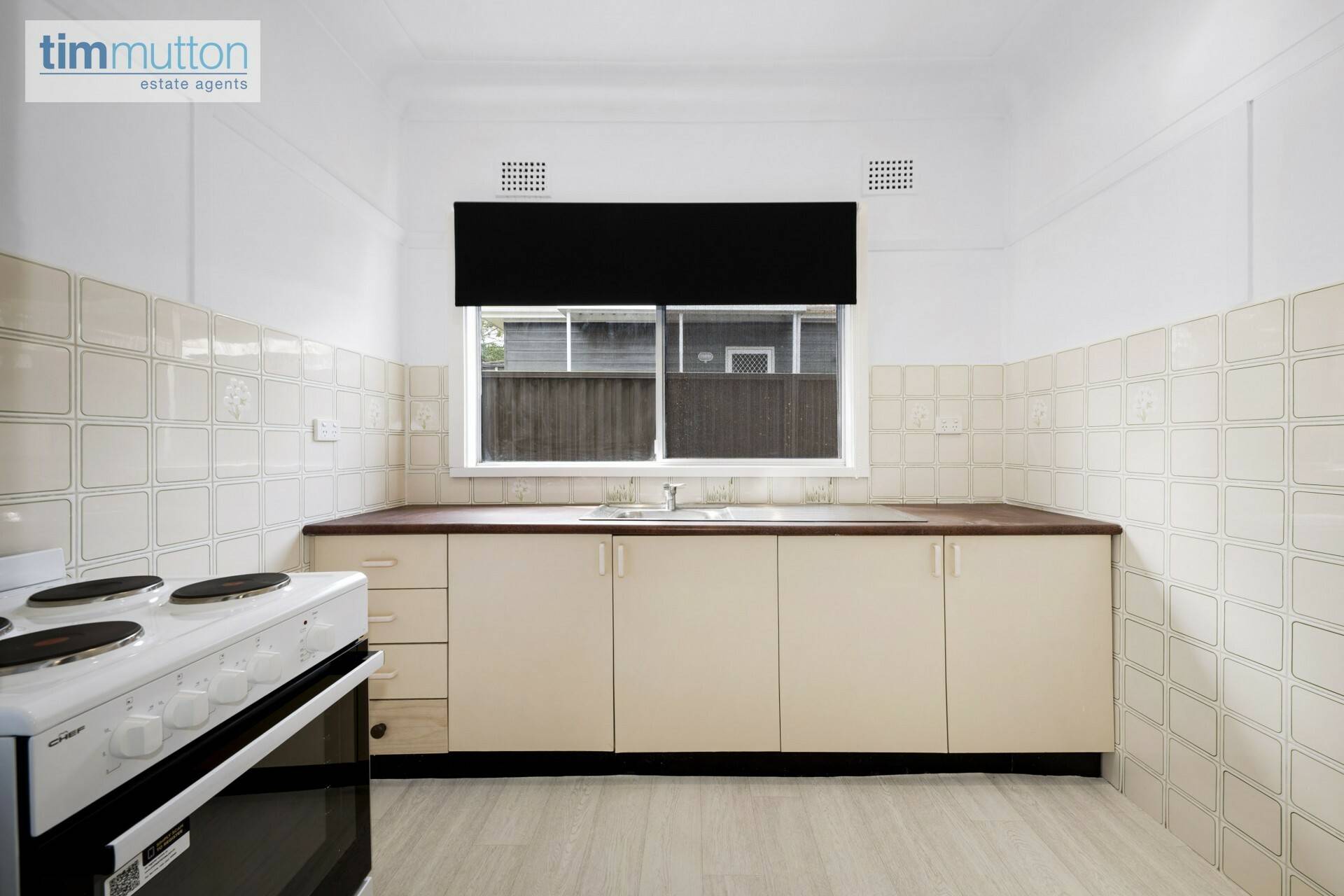 - Kitchen features electric cooking