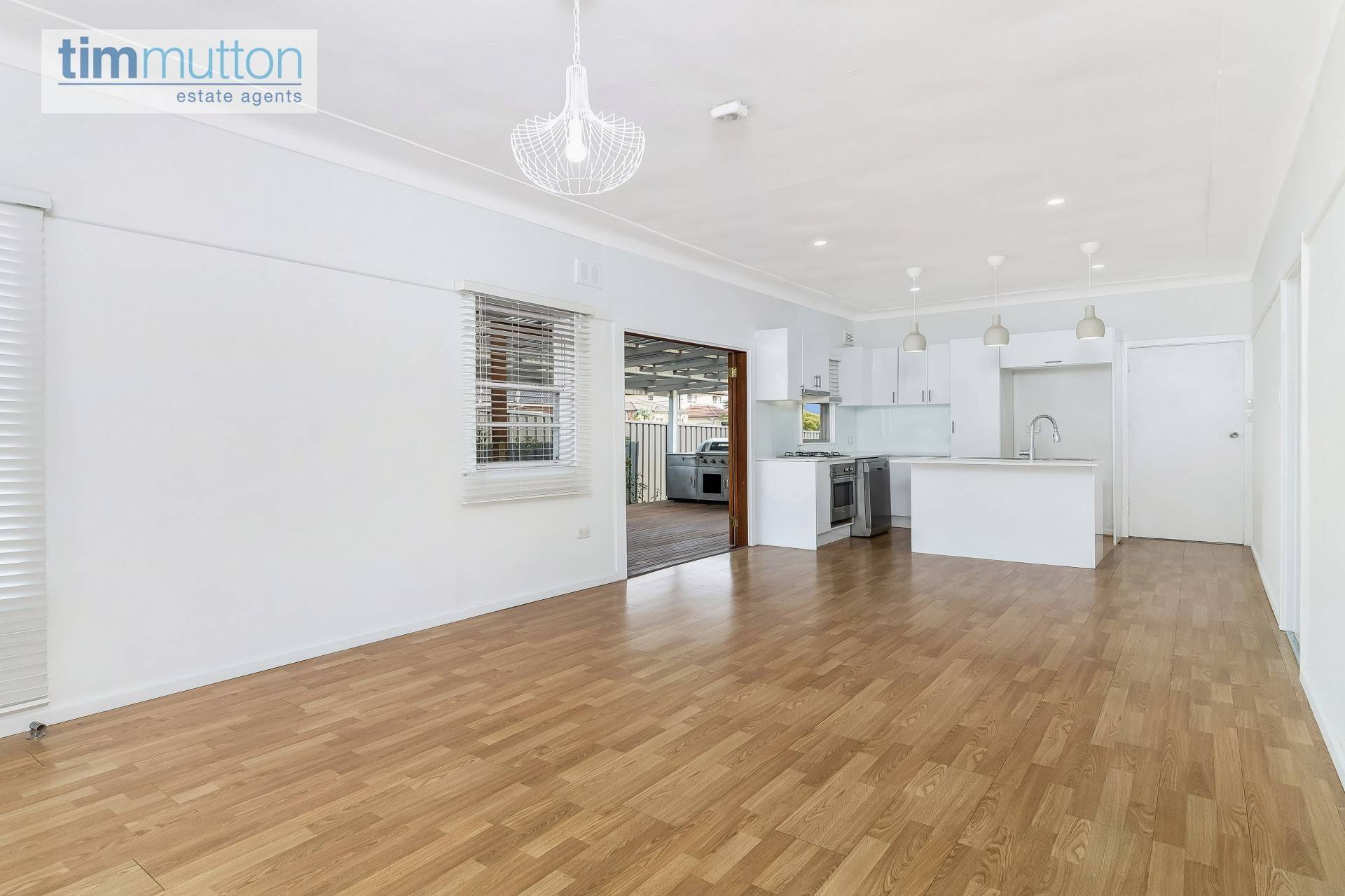 - Open plan living and dining with timber floors throughout